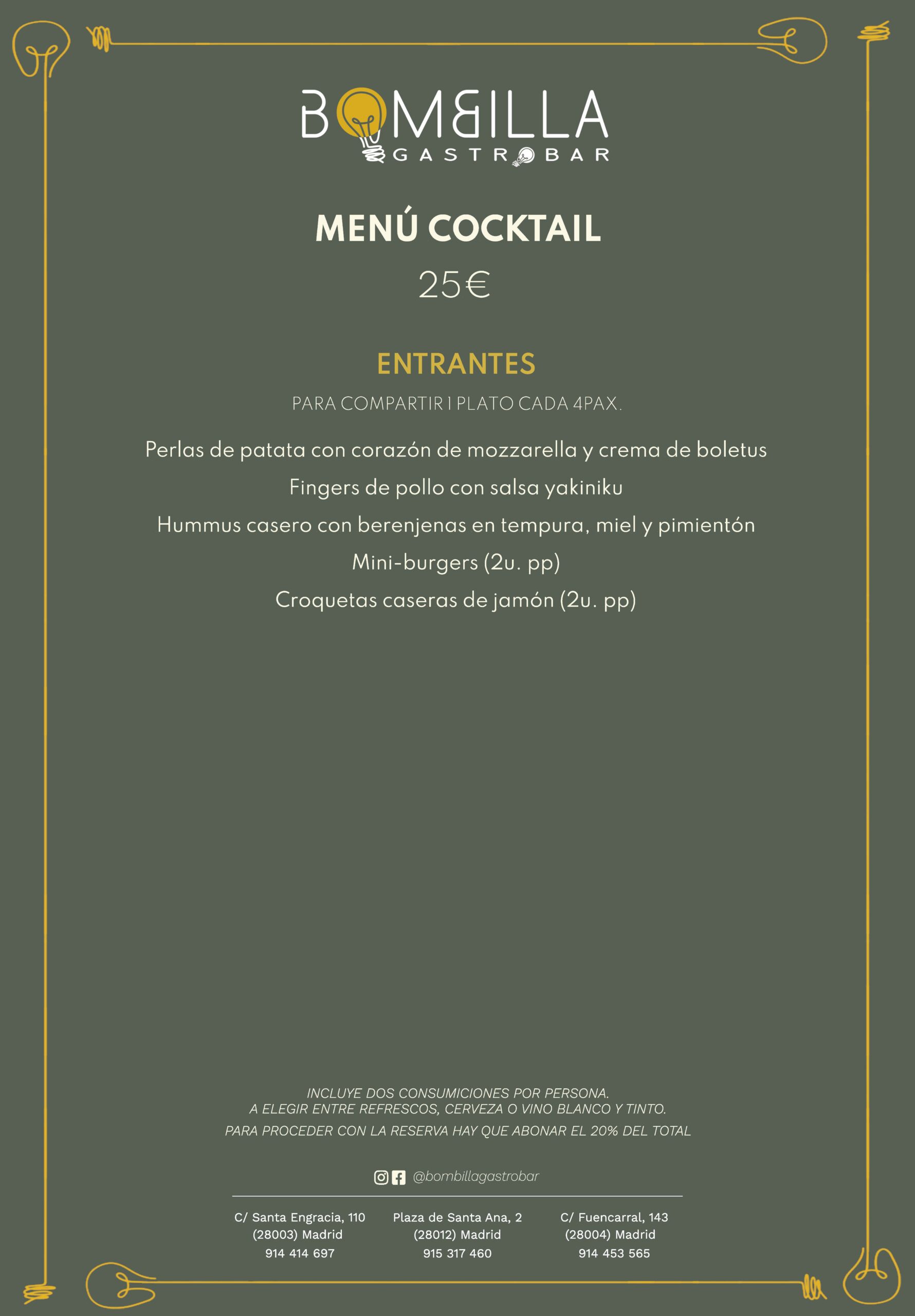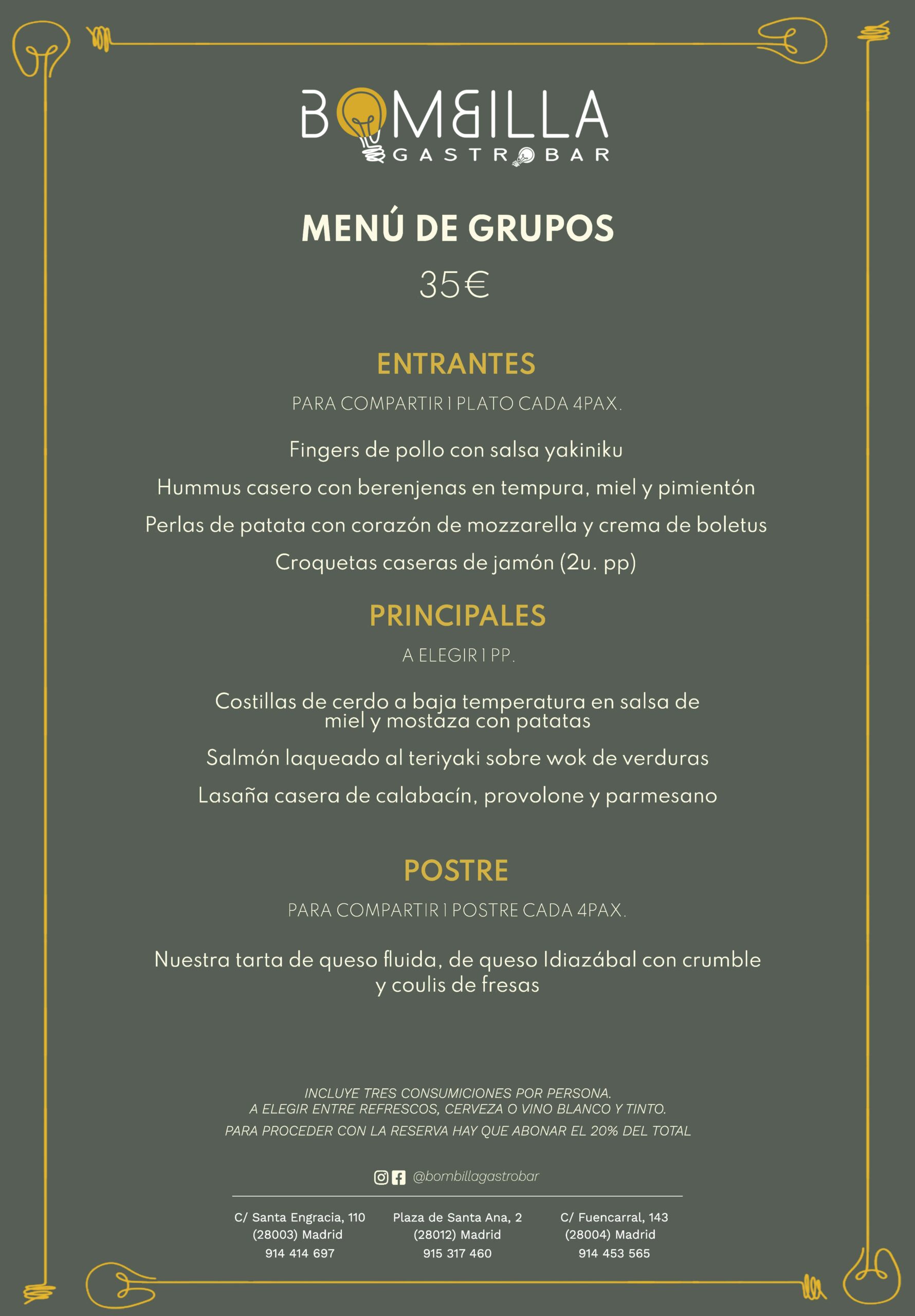 Menú cocktail Menú de grupos 25€ Menú de grupos 35€ ¿Quieres celebrar un evento con nosotros? Nombre Email Teléfono ¿Cuántas personas asistirán? ¿En qué fecha estás pensando? Mensaje Enviar Ir al inicio